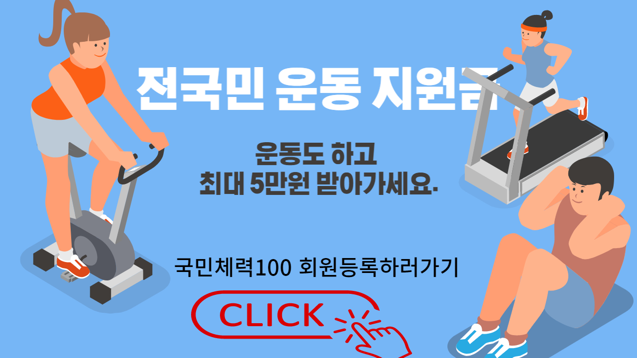 건강과 즐거움을 동시에 누릴 수 있는 방법을 찾고 계신가요? 그렇다면 "국민체력100 스포츠활동 인센티브 제도"를 소개해드릴게요.운동을 하면서 최대 5만원까지 지원받을 수 있습니다.