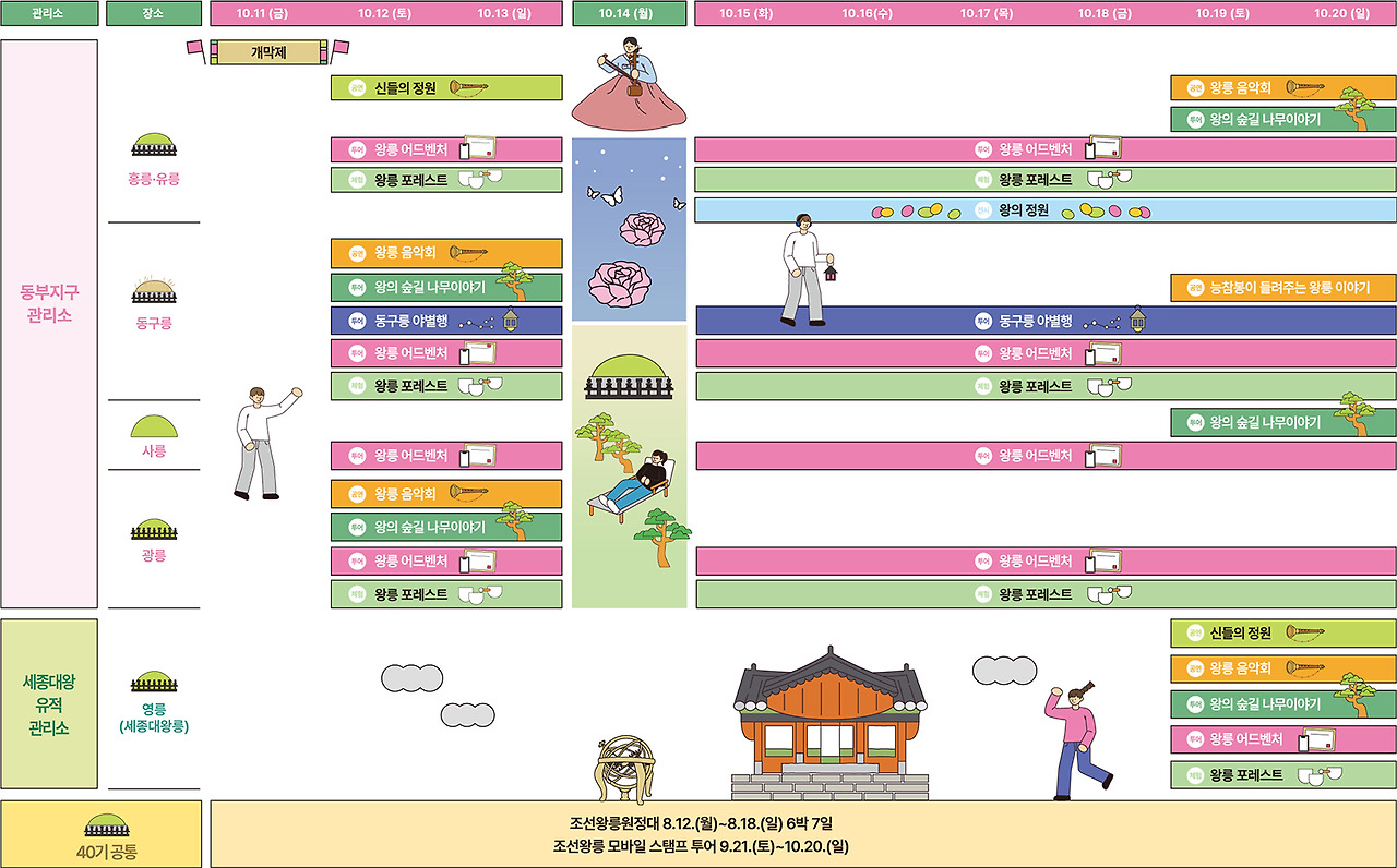 동구릉 야별행, 왕릉음악회 등 인기 프로그램을 사전 탐색해 조기 마감에 대비할 수 있습니다.
