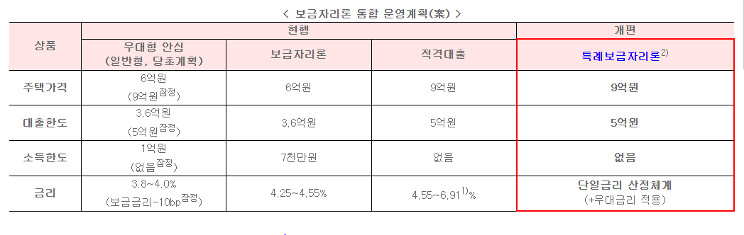 특례보금자리론은 보금자리론, 안심전환대출, 적격대출을 모두 합친 상품으로 약 40조 원 공급예정입니다.
