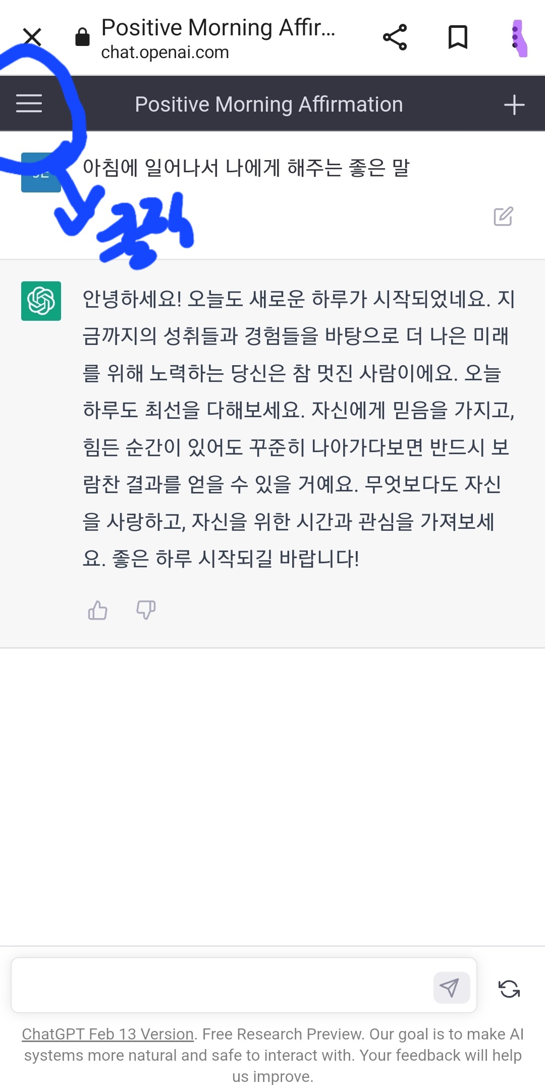 ㅡ옆에 있는 세모표시 클릭하면 chat gpt가 답변해 줍니다.