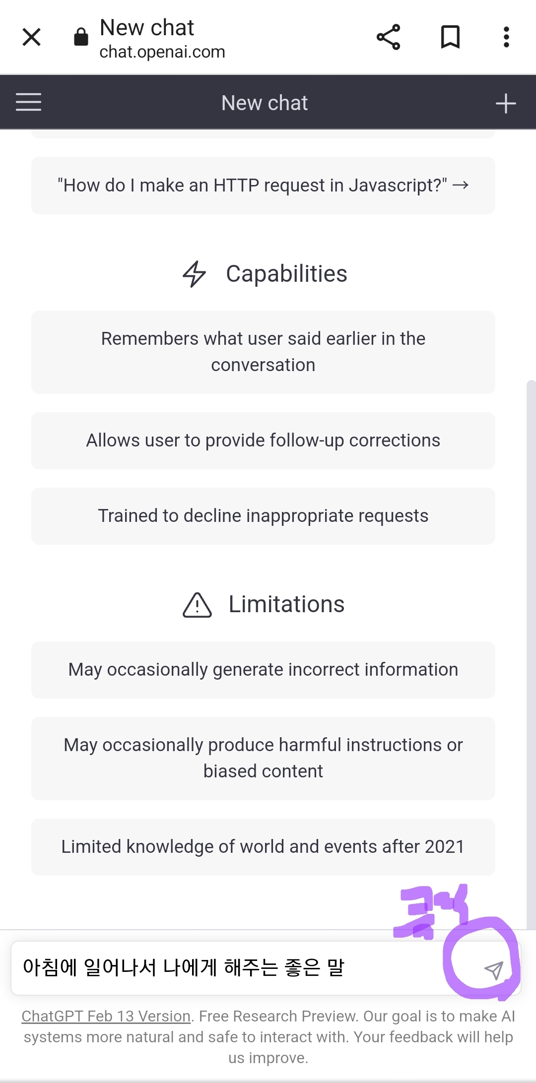 8. 이 화면이 열리면 밑에 표시된 창에 한글로 궁금한 거 물어보기